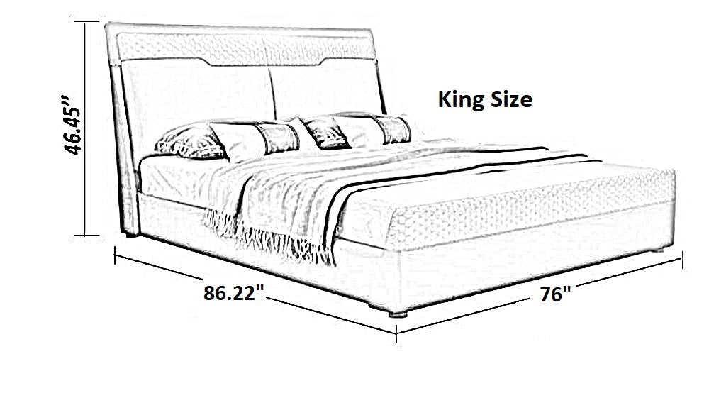 The Excellent Fine Design Luxurious Leather Bed, which is designed to add comfort and style to your bedroom, exudes modern elegance. For long-lasting durability, this stylish Leather Bed has a solid wood frame and luxurious leather upholstery. Its sleek backrest creates a comfortable, welcoming atmosphere, and its solid wood legs offer stability.