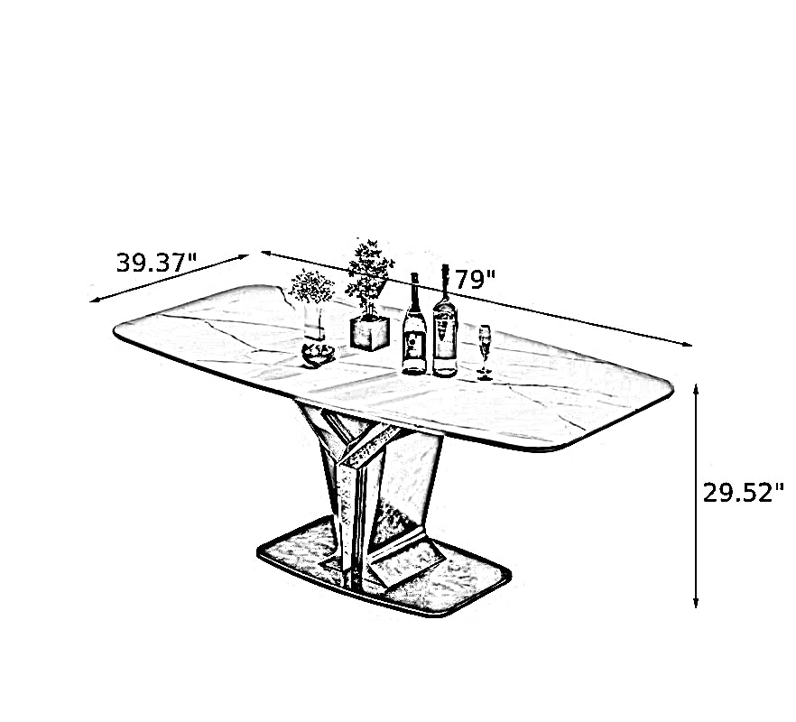 A natural balance between comfort and stability is provided by the chairs' solid wood construction and legs. The chairs can be tailored with velvet fabric to your preference and are upholstered in faux leather for a sleek finish. This Geometric Rectangular Marble Dining Table Set combines quality, style, and functionality, making it the focal point of your dining area and ideal for entertaining guests or family meals.