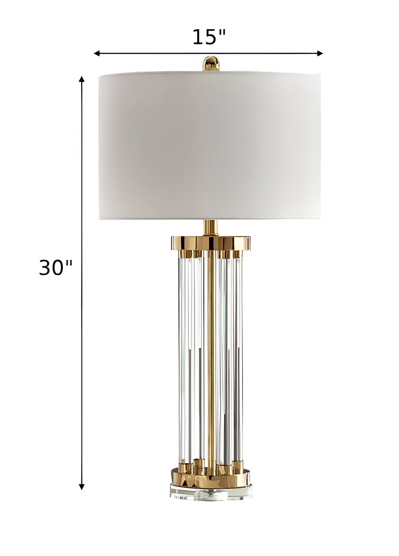 With its Golden Crystal Clarity LED Table Lamp and its stylish crystal-style glass base, this Golden Table Lamp will elevate any workspace. The shade gives the modern design a refined and elegant touch. It is made of quality fabric material.