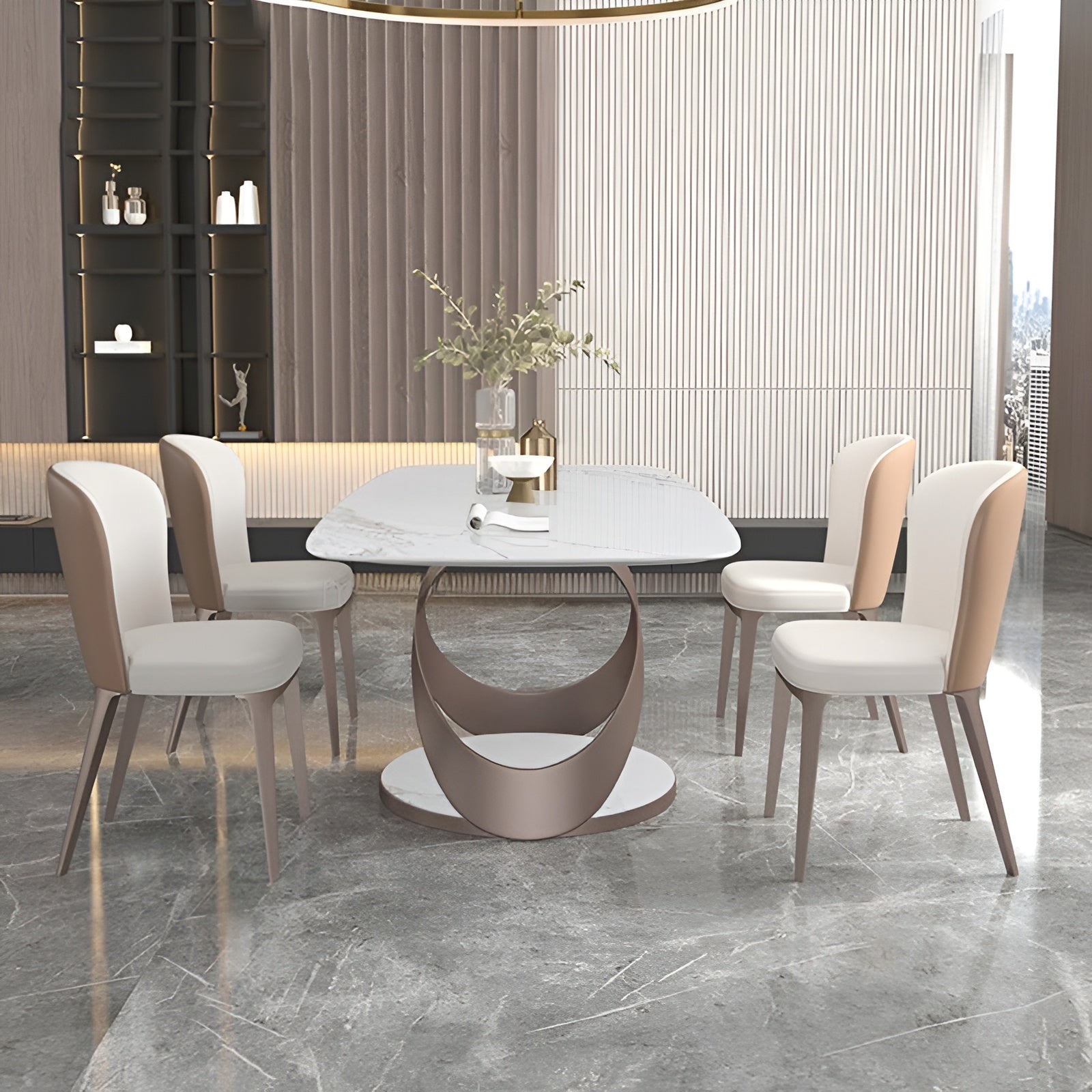 Italian Rectangular Marble Dining Table Set With Chairs / Lixra