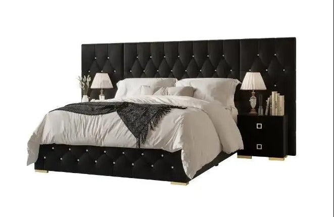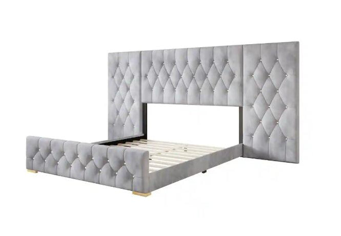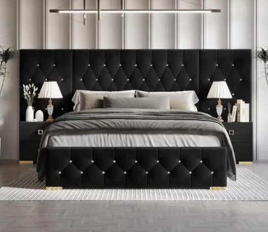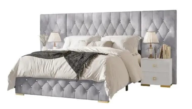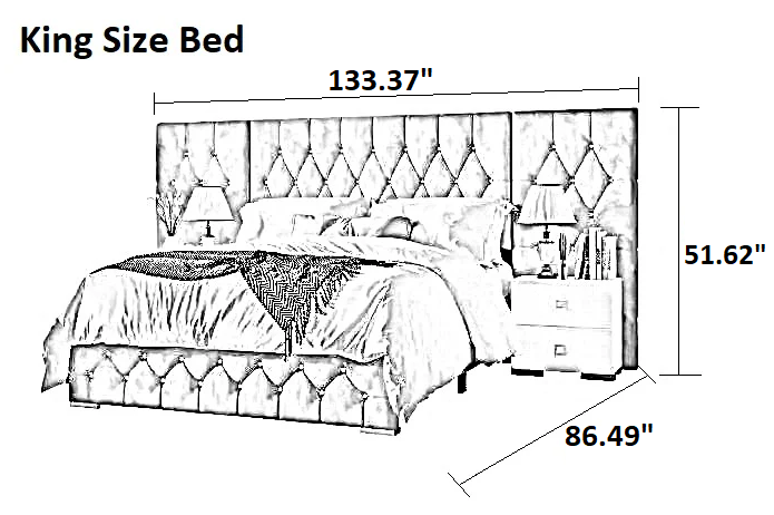 King Size Diamond Tufted Modern Soft Velvet Bed