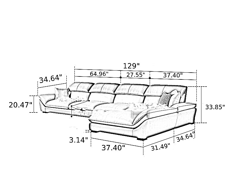 • L129xW34.64xH33.85 Inches (327.6x88x86 cm)