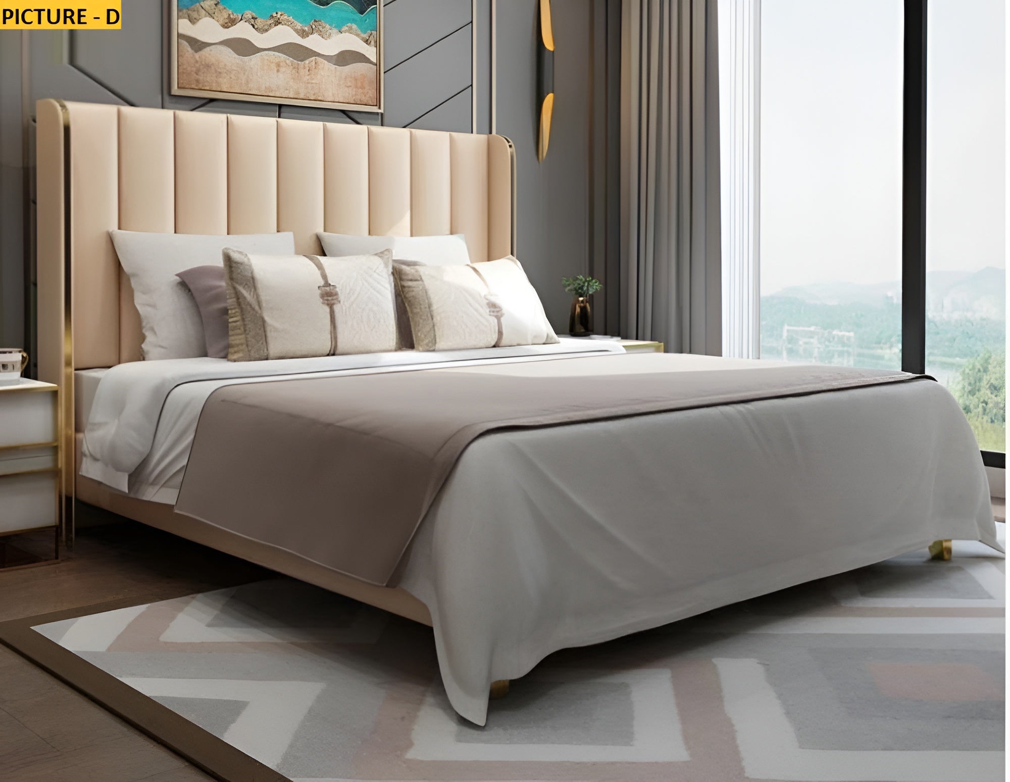 The Lavishing Modernistic Luxurious Leather Bed will add comfort and style to your house. It has a timeless style and a smooth, skin-friendly feel thanks to its leather upholstery. Sturdy metal legs guarantee stability, and the solid wood structure offers long-lasting durability. The Leather Bed's medium-density foam filling provides balanced support for a good night's sleep.