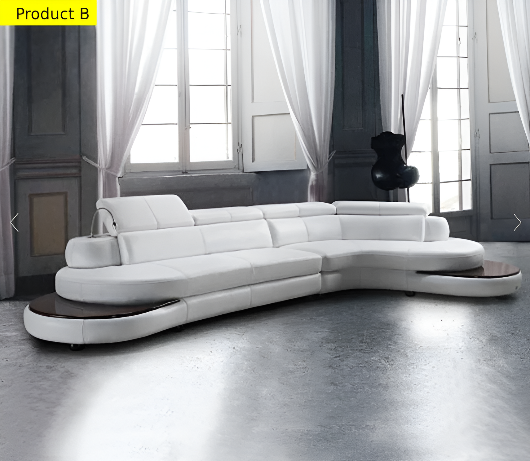 Leather Sectional Sofa for Living Room with a great ravishing look and heavenly comfort. It is a modern curved sofa that gives great enhancement to your living room decoration. The seats look great and comfortable too. The headrest of this sectional sofa is adjustable according to the needs.