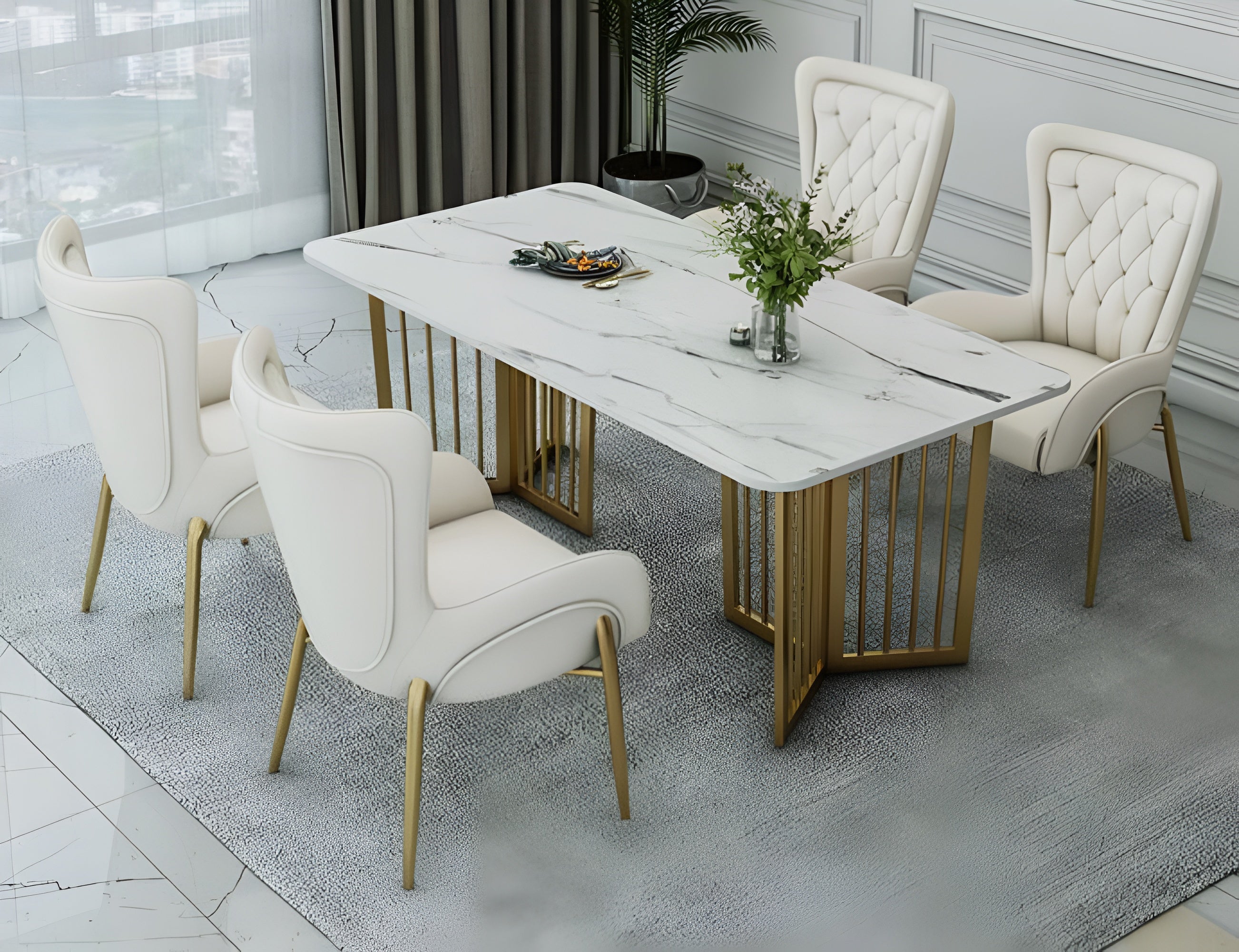 • Dining Chair Upholstery Material: Faux Leather(but can be customized with Velvet Fabric)