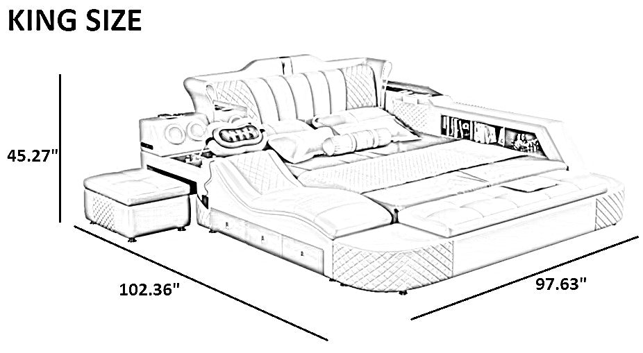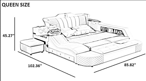 This intelligent bed features a pre-installed Bluetooth audio system for an immersive music experience, as well as a built-in wireless charging function to keep your devices powered. It can be adjusted to suit your requirements and preferences thanks to customizable options. Combining modern aesthetics, cutting-edge functionality, and durability, the Leather Upholstery Modern Design Smart Bed is an ideal upgrade for your bedroom.