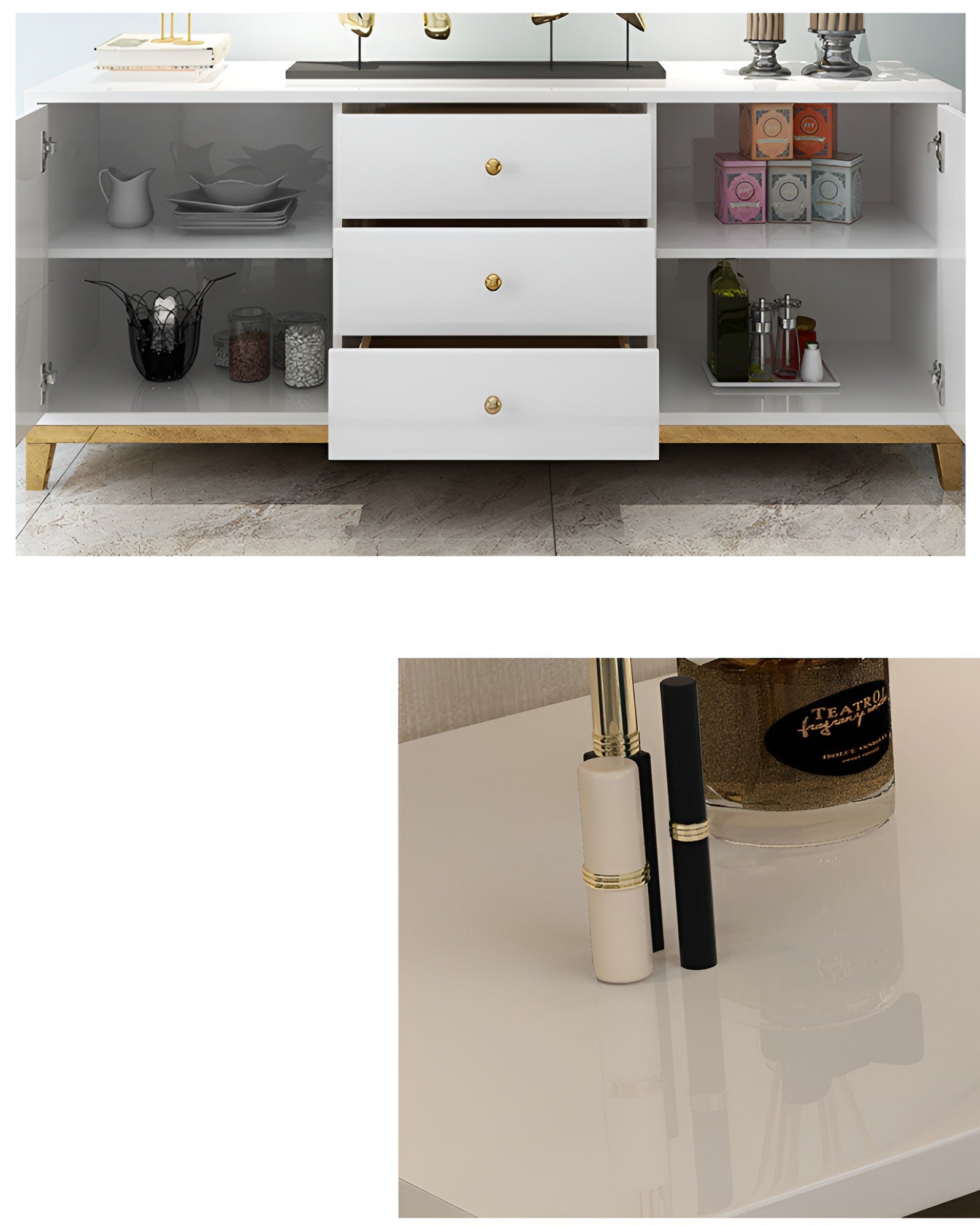 This classic style Light Glossy Wooden Modern Buffet Table makes a welcoming impression with its warm-finished wood body. The wooden top keeps the profile looking lightweight while allowing the base to take center stage. For a modern minimalist look with an abundance of functionality, this side table is sure to please. The shelf has large open areas to keep essentials within easy reach. The high-quality construction of this Light Glossy Wooden Modern Buffet Table  provides it stability and durability for years. This Wooden Buffet Table will provide elegance to the area placed at your home.
