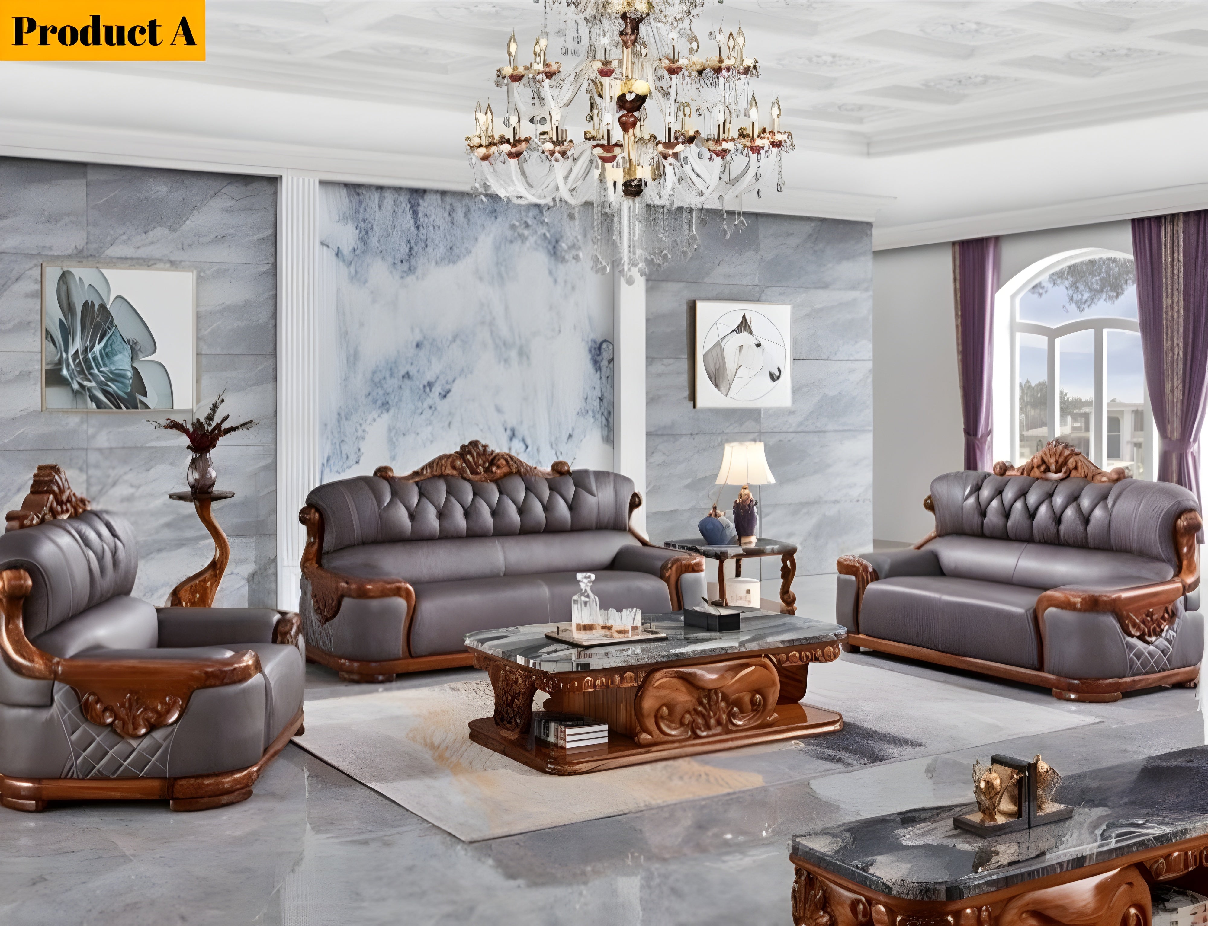 With this leather sofa set's sturdy, solid wooden legs and refined look, the deep seats of this leather sofa provide great relaxation. The royal handcrafted wooden structure provides a rustic look, and thus it has a great capacity to last for many years. Liville 3-Piece Leather European Sofa Set will add a royal and luxurious look to your living area.