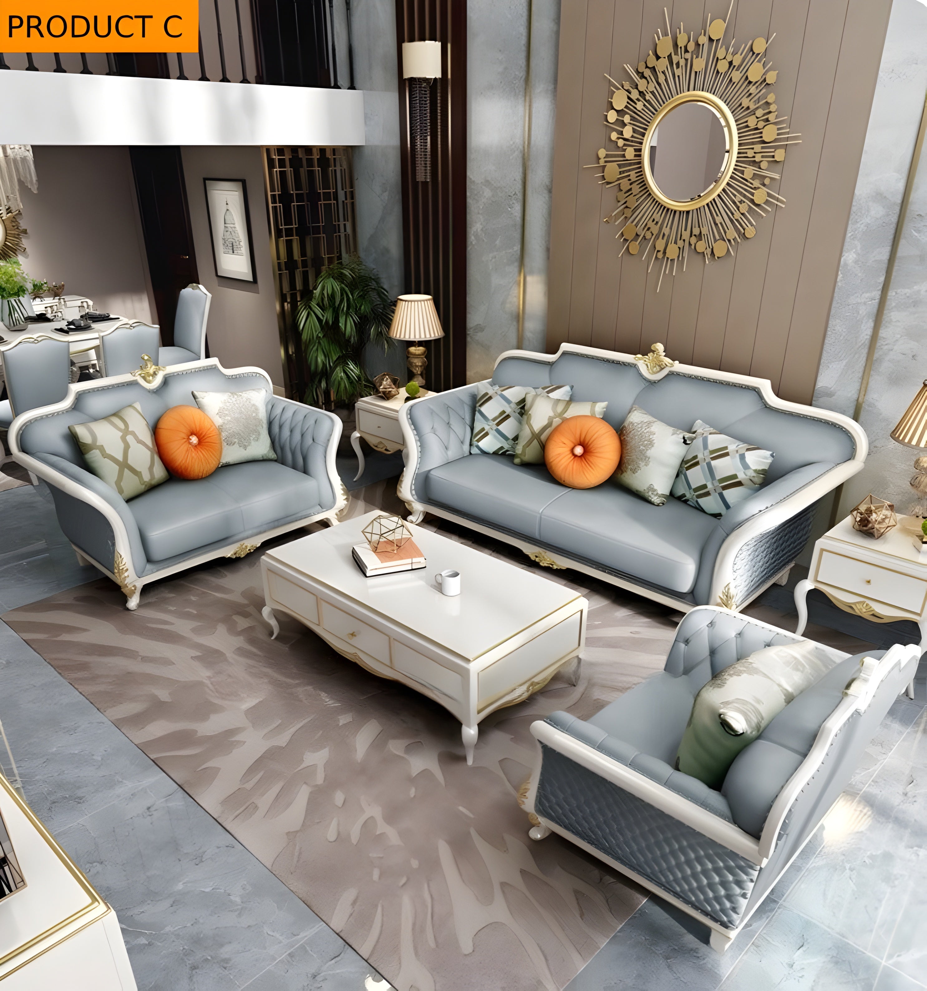 The quality leather upholstery of this royal sofa set makes the appearance luxurious of the Liville Wooden European Leather Sofa Set of 3, which is inspired by European-style designs. An ideal choice for any kind of living space.