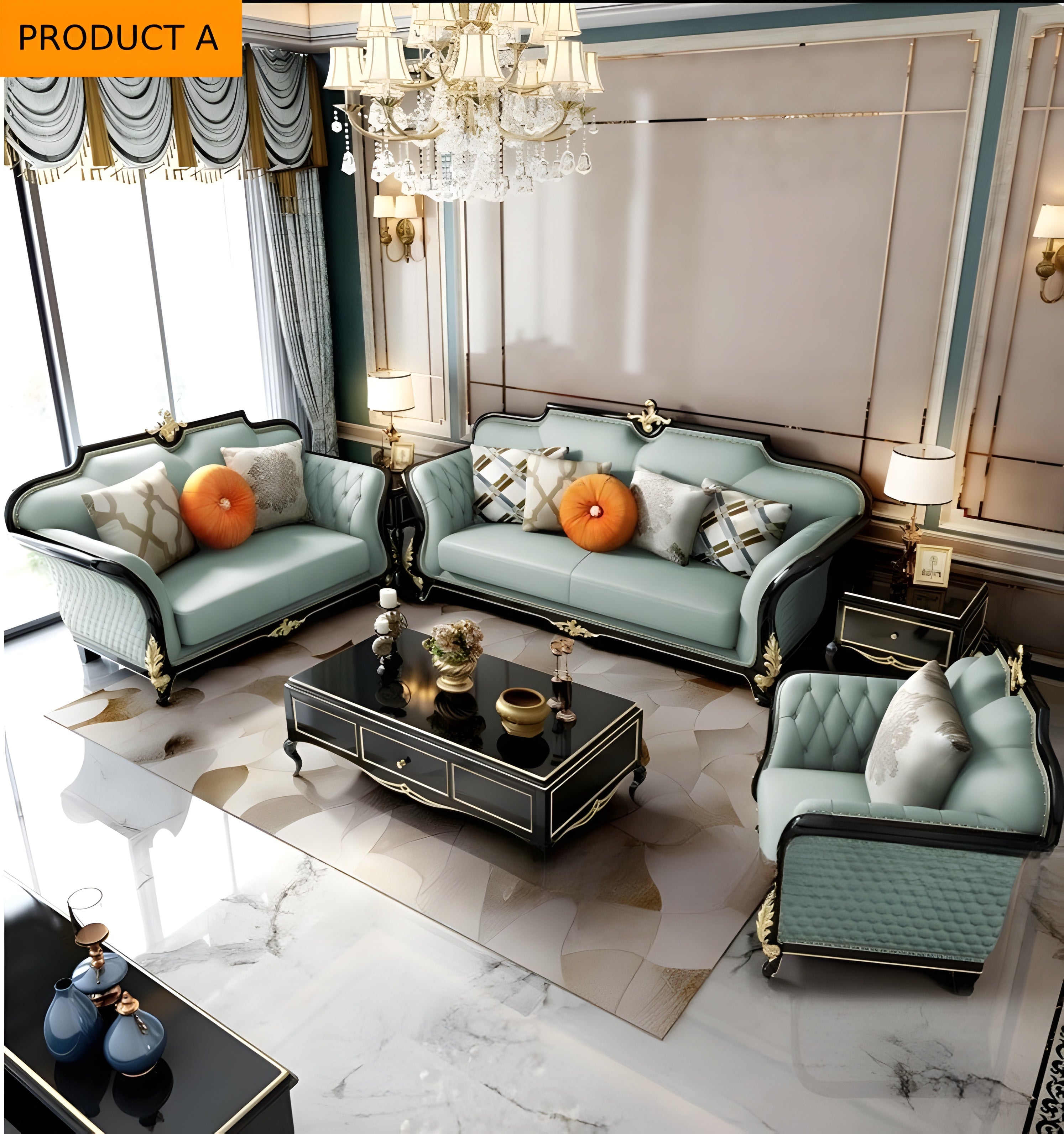 Liville Wooden European Leather Sofa Set of 3 - Lixra.com