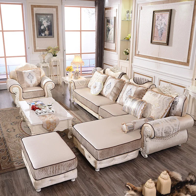 Liville Style European Fabric Sofa Set With Chaise - Lixra.com