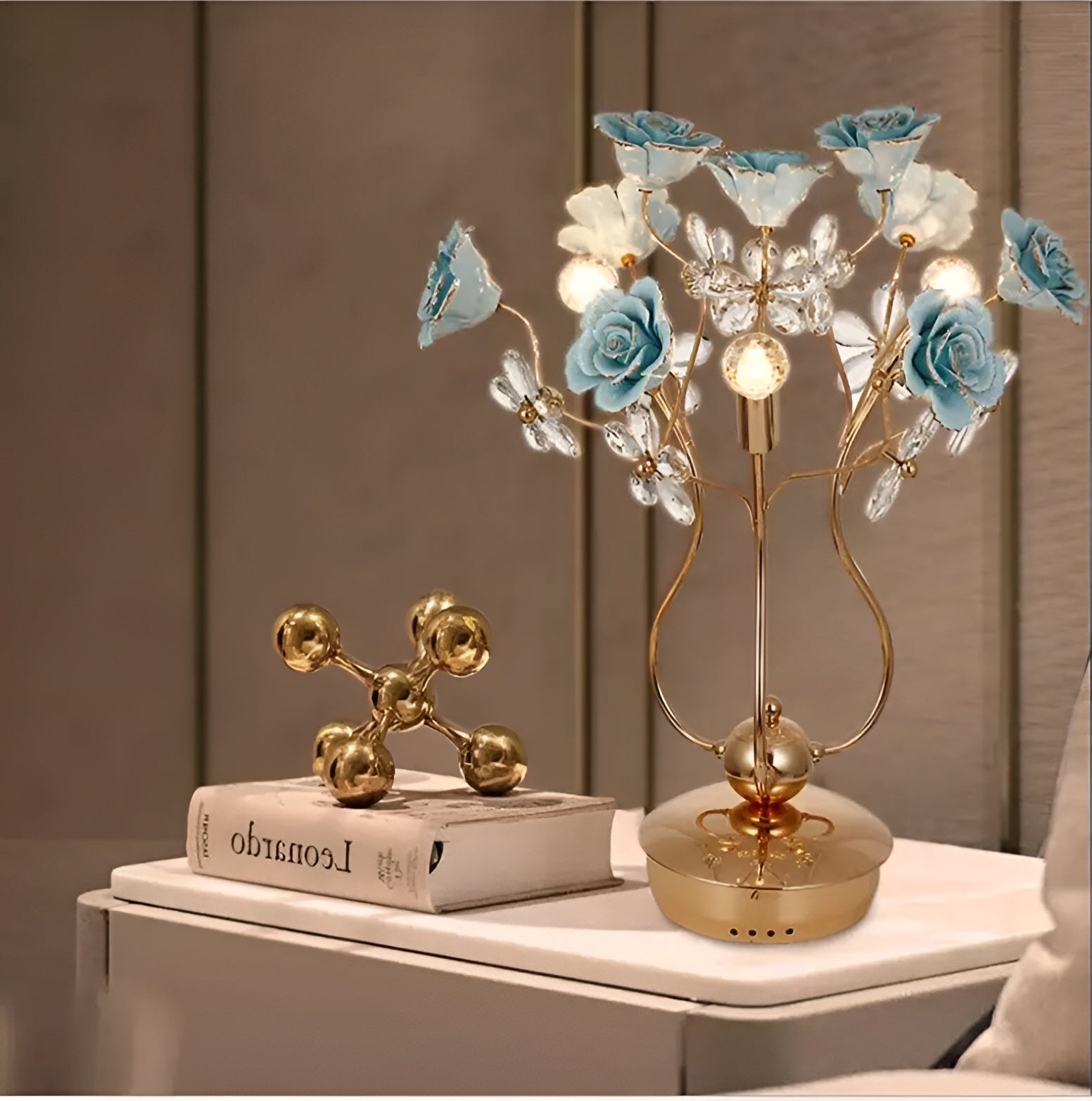 The magnificent Luxurious Blue Rose Ceramic Table Lamp is a work of art that perfectly combines creativity with usefulness. Each petal of this lamp has been created by hand using ceramic. Every petal's hand-painted gold surface gives the Ceramic Table Lamp’s sumptuous look an extra touch of luxury.