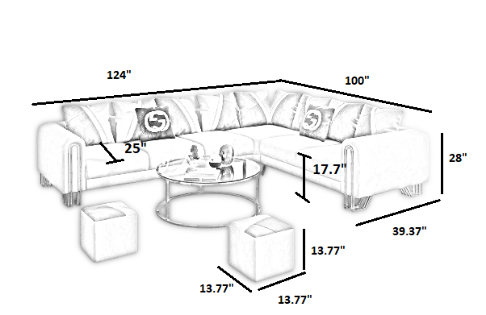 • L124+100xW39.37xH28 Inches(315+255x100x71 cm)