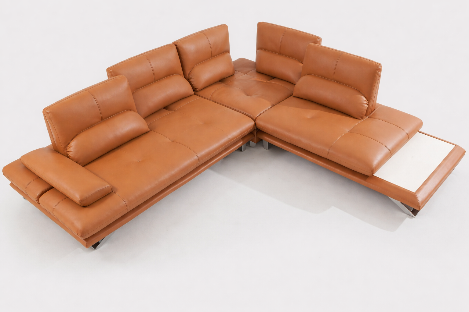 Give your living room a warm and stylish upgrade with the Luxurious Contemporary Style Cozy Leather Sectional Sofa Set. This modern L-shaped sofa design brings comfort, style, and practicality together in one elegant piece. It showcases clean lines, rich dark upholstery, and a handy built-in storage side table that makes everyday living easier.