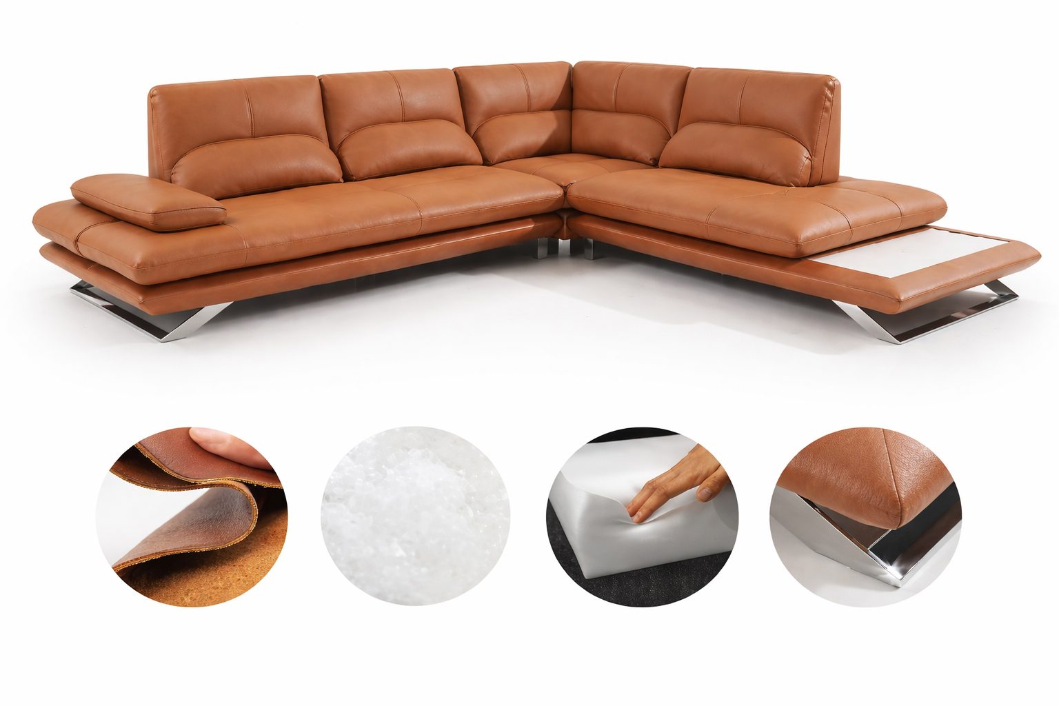 This Luxurious Contemporary Style Cozy Leather Sectional Sofa Set fits beautifully in contemporary spaces, creating an inviting look that feels right at home.
