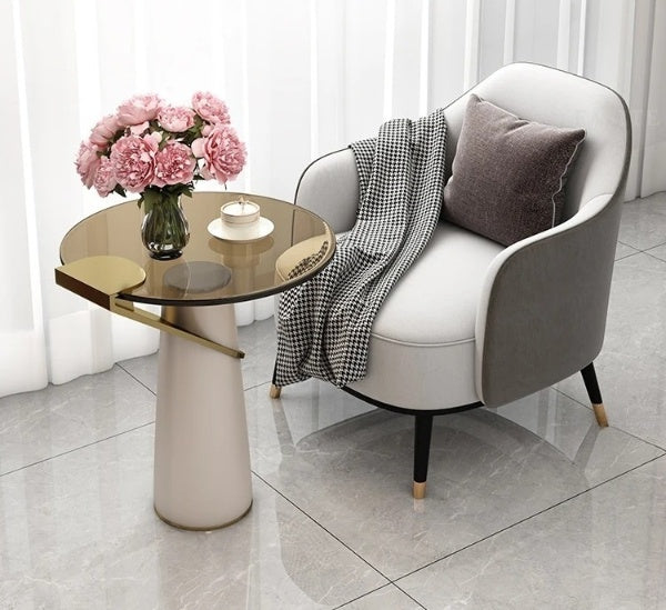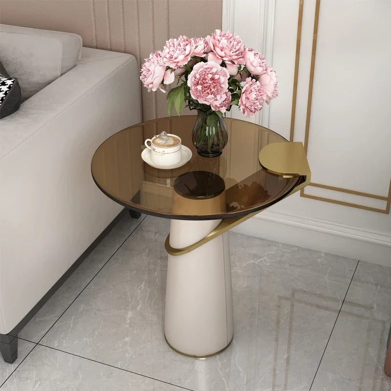 A Luxurious Design Round Side Table is an elegant, circular table that typically sits next to a sofa or bed. It's designed to add a touch of sophistication to your room with high-end materials and finishes.