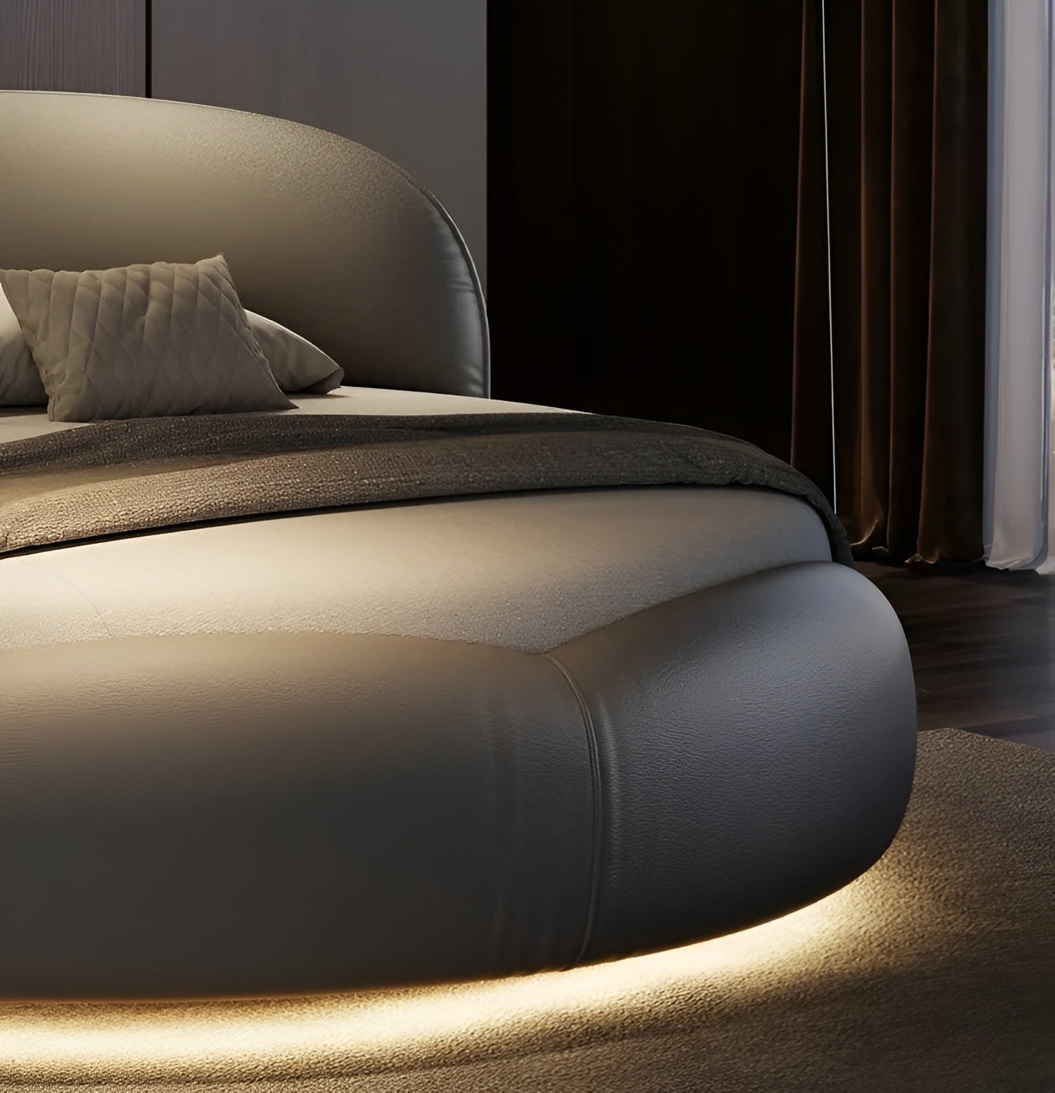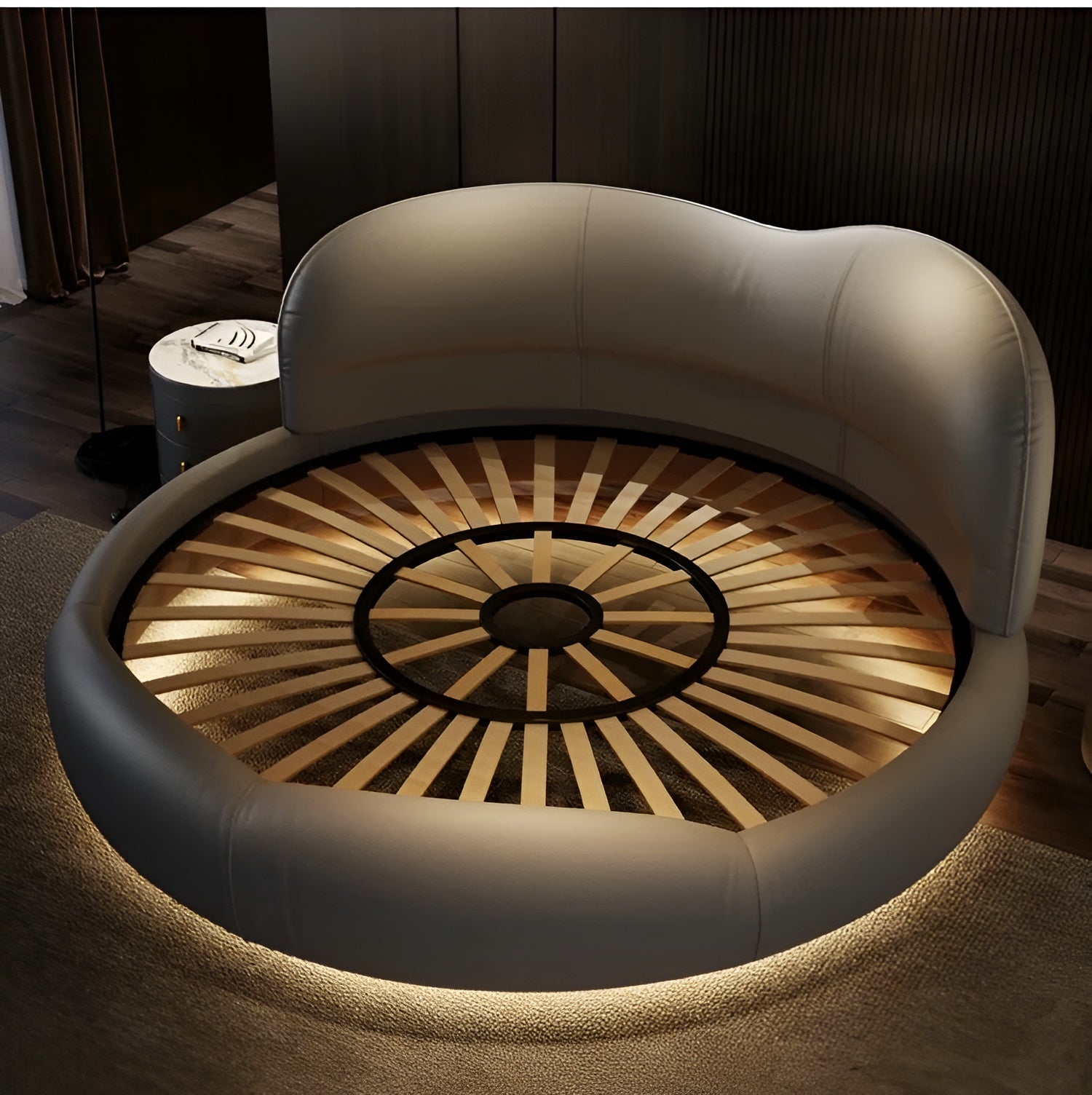 Luxurious Leather LED Modern Round Bed - Lixra.com