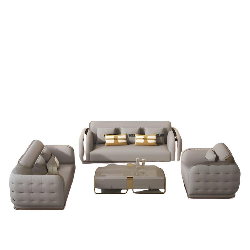 Luxury Fusion of Tufted Design 3-2-1 Leather Sofa Set