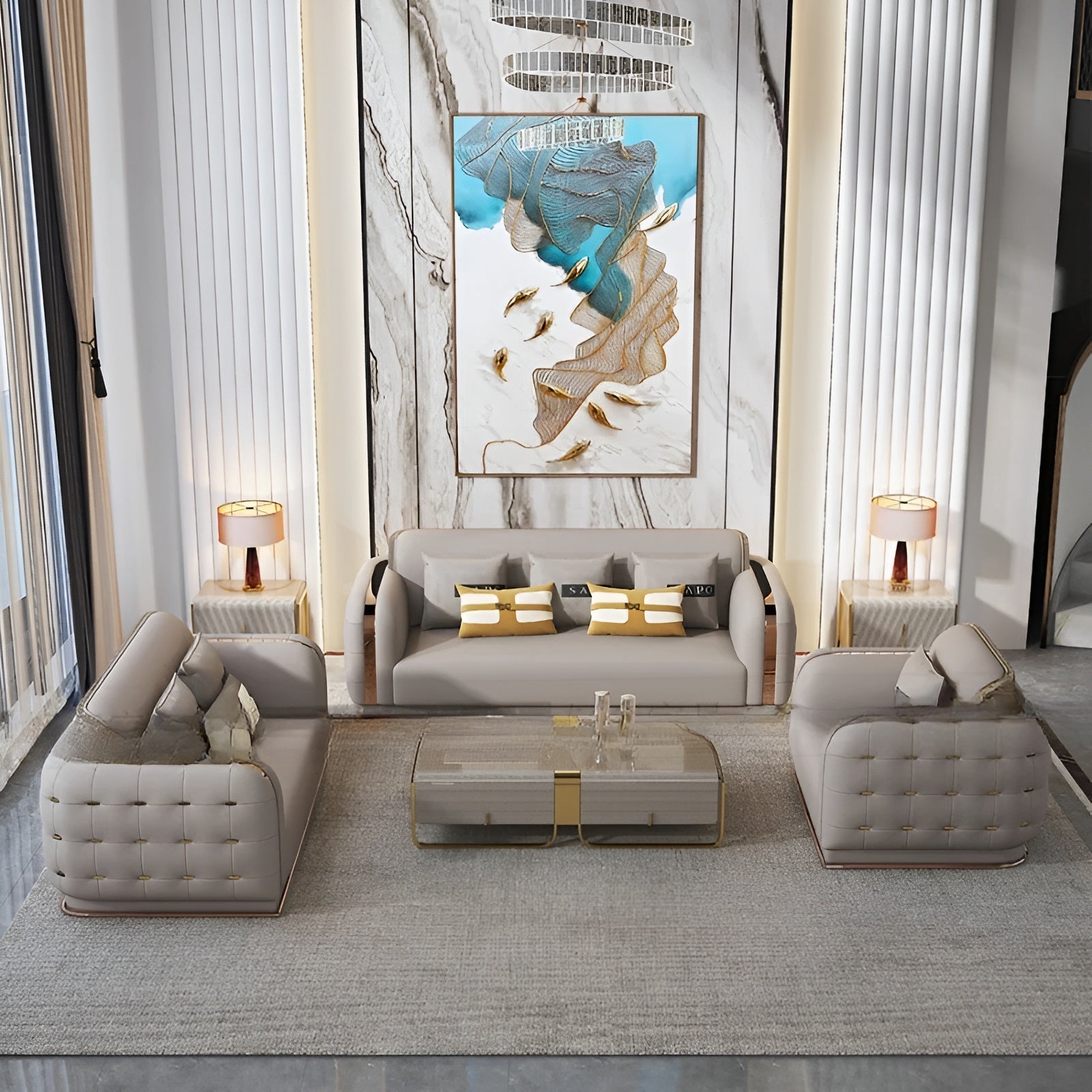 Luxury Fusion of Tufted Design 3-2-1 Leather Sofa Set / Lixra