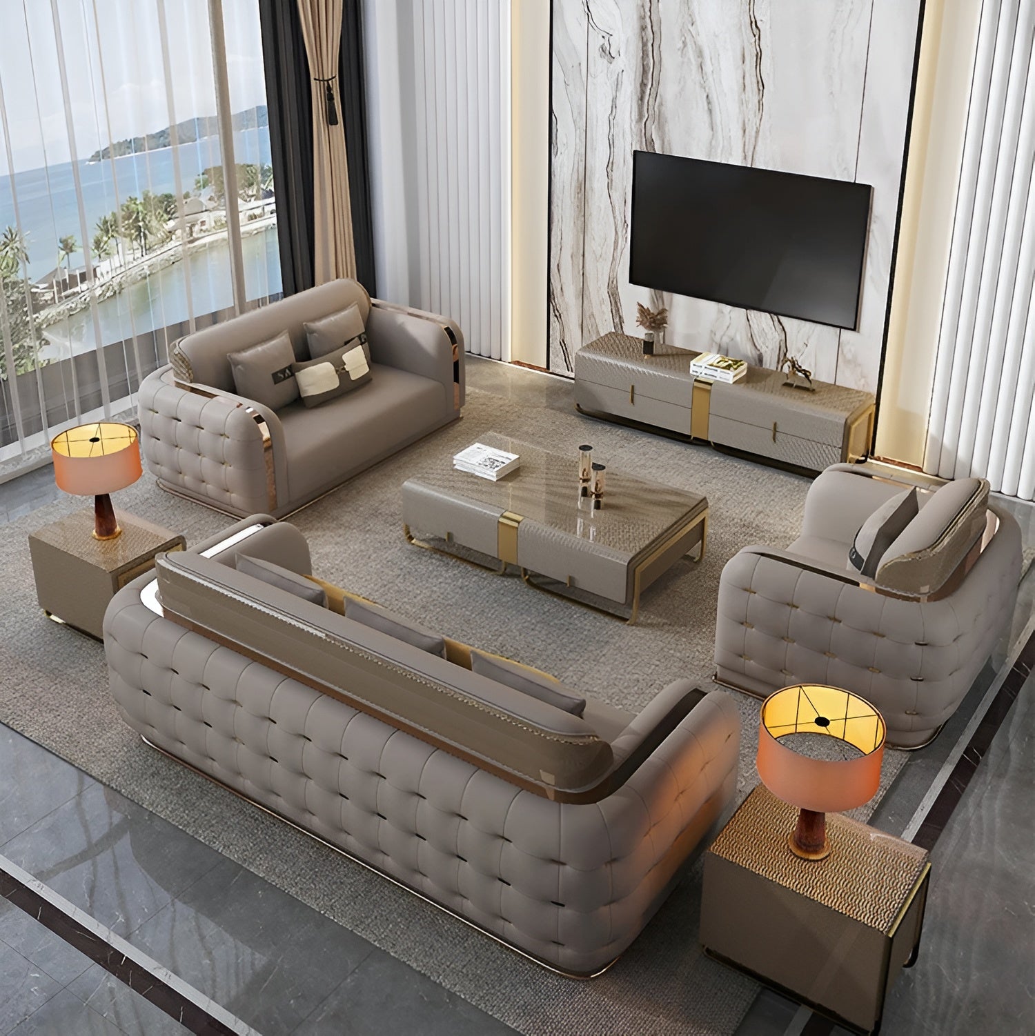NOTE: TV cabinet, Coffee Table & Side Tables are not included with the Sofa, Can be added from the dropdown menu.