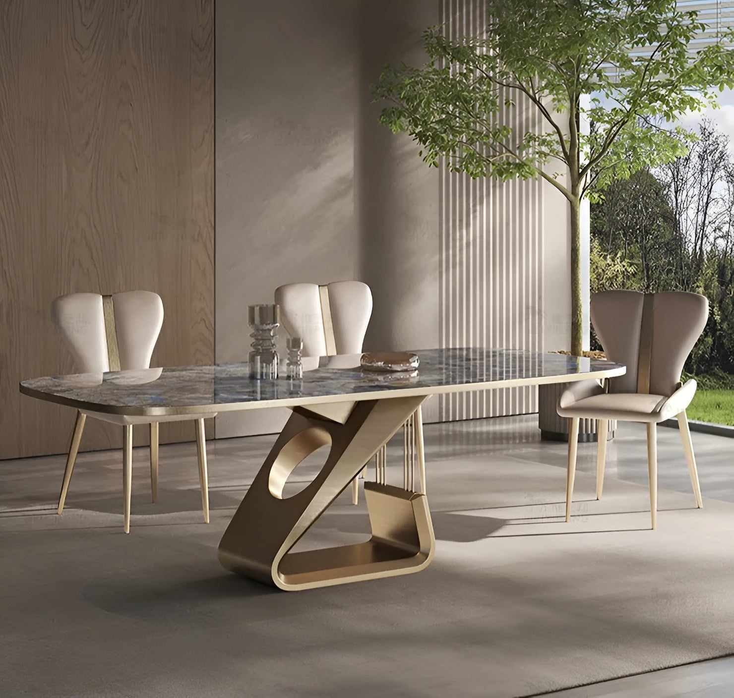 Metal Base Marble-Infused Dining Table Set / Lixra