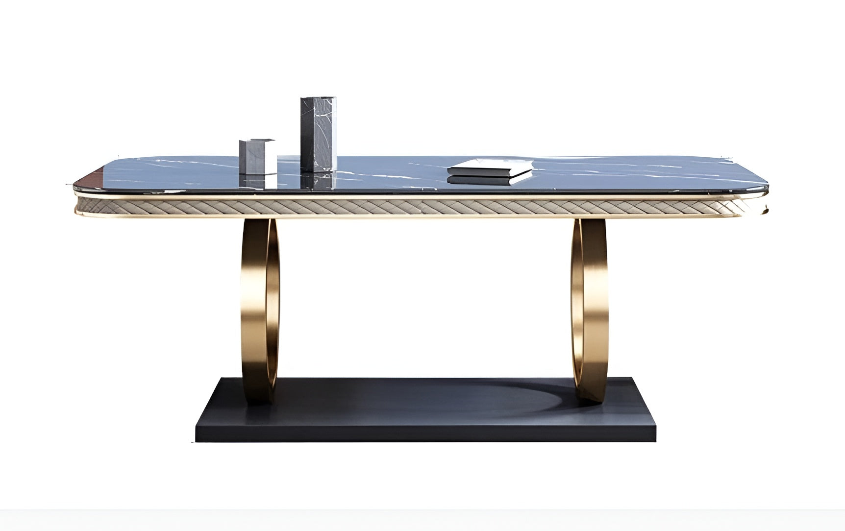 This excellent finish Modern Creative Marble-Top Dining Table adds a sophisticated style to any dining space. Its sturdy built metal base provide long-lasting durability with great capacity. The color combination and design of this furniture give it a luxurious look. The Marble Dining Table comes with a great sturdy structure which has a great capacity to steal the limelight of any dining space.