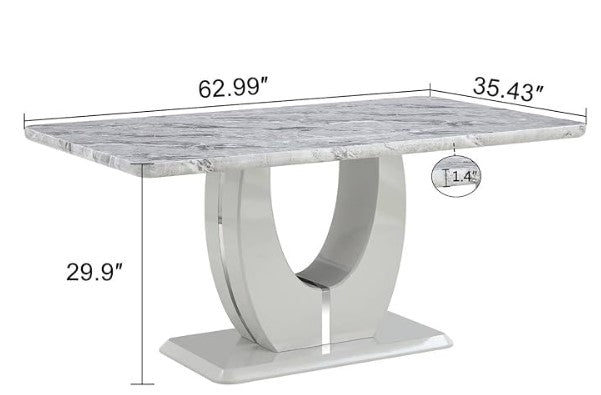 This Modern Glossy Marble-Top Dining Table adds a touch of glamour to your dining area. This dining table is ideal for giving your kitchen or dining area an air of industrial design. This dining table has a rough feel, but it is incredibly robust, strong, and attractive. Its fine craftsmanship enhances its stunning retro look. Sturdy base support holding the top in place and providing a solid grip makes the table a durable solution for a long time, providing a roomy dining area so that guests may gather and enjoy. This Modern Glossy Marble-Top Dining Table is designed to mix contemporary design with classic comfort while looking incredibly modern and stylish. Simple to clean and easy to maintain with a wipe cloth.