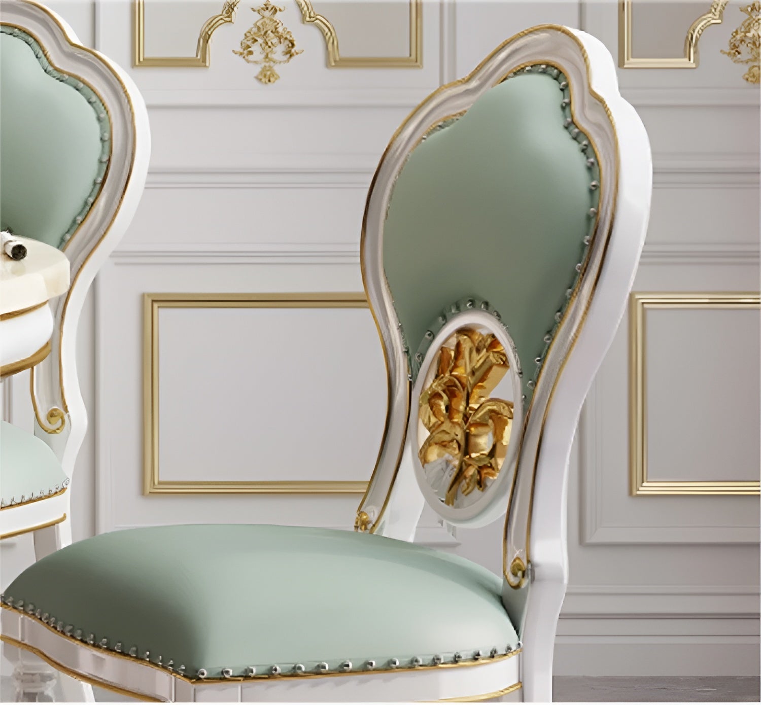 My new dining table set is a TOTAL GAME CHANGER! The marble top is so sleek and luxurious, it's like dining in a fancy restaurant every night! The solid wood chairs with leather upholstery are super comfy and match the table perfectly – the whole set is modern, chic, and absolutely stunning. Love how it elevates my dining experience!