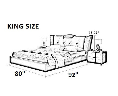 The Modern Sophisticated Leather Platform Bed is ideal for a sophisticated bedroom because it combines long-lasting comfort with style. Its solid wood structure offers dependable strength, and its exquisite leather upholstery adds a smooth and sophisticated touch. This Modern Bed's supportive headboard design guarantees both luxury and functionality.