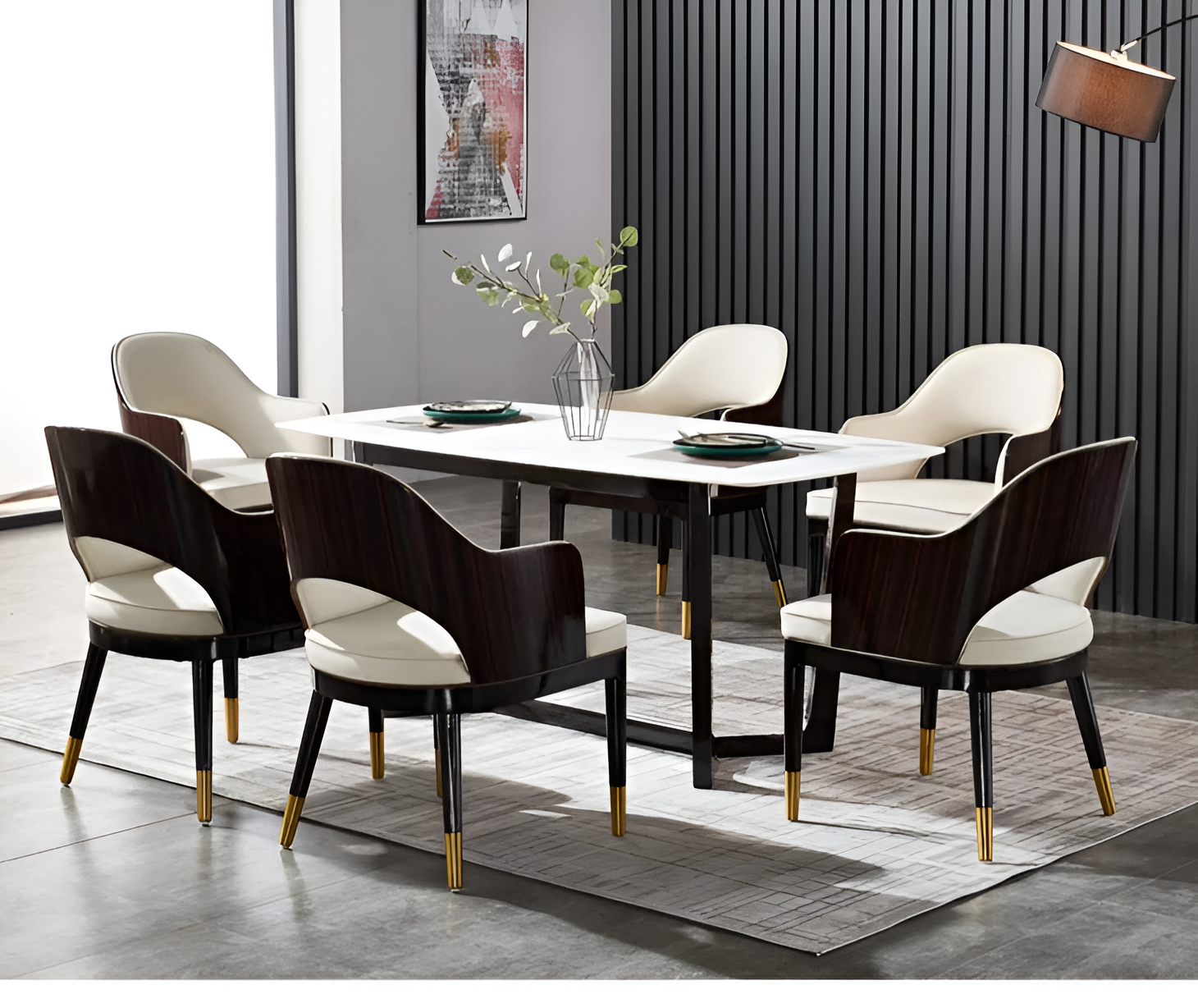 • Dining Chair Leg Material: Solid Wood with Metal Caps
