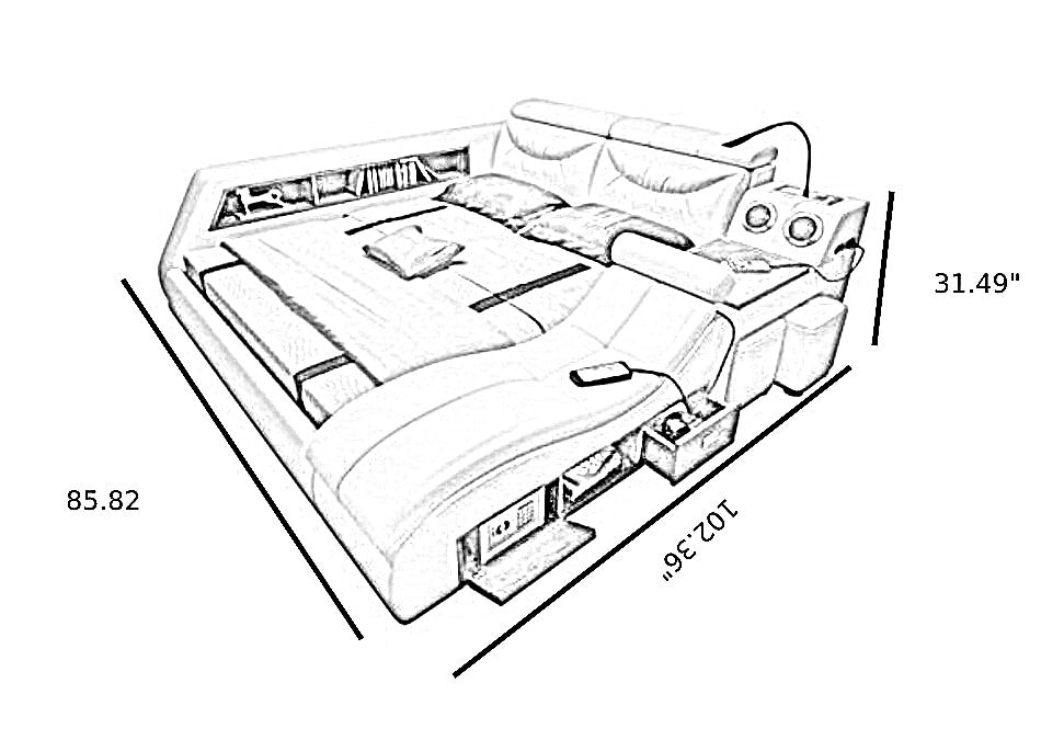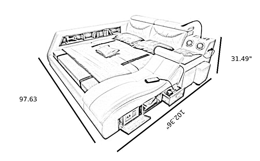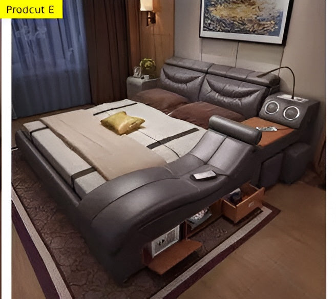 Modernistic Multi-Functional Soft Leather Bed