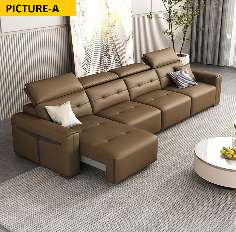 Multifunctional Folding Remote Control Leather Sofa Bed for the living room that enhances the beauty of your room. Apart from its beauty, we have also focused on the sofa's comfort so you can relax on it all day. It is easily convertible from a sofa to a cozy bed just by using a remote. It is built with solid wooden frame structure to strengthen the furniture and give it durability.