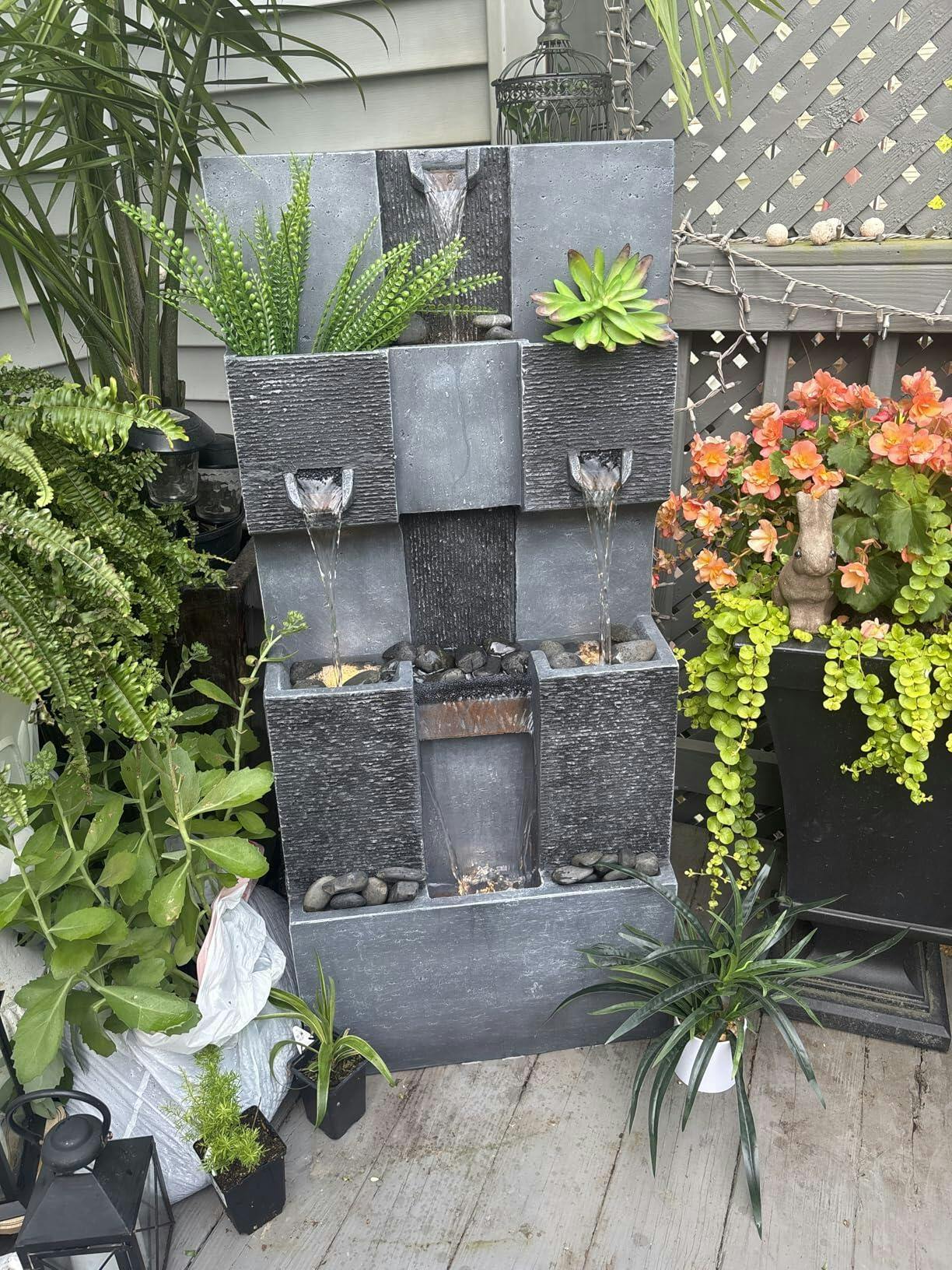 This Outdoor Water Fountain With LED Lights will improve your outdoor area. It's made of durable resin with a natural stone appearance. It is portable and lightweight, with multiple positioning options and convenient storage. The fountain's 4 built-in LED lights have a combined capacity of 12W and provide a gentle glow that makes your porch, backyard, garden, or lawn appear tranquil.