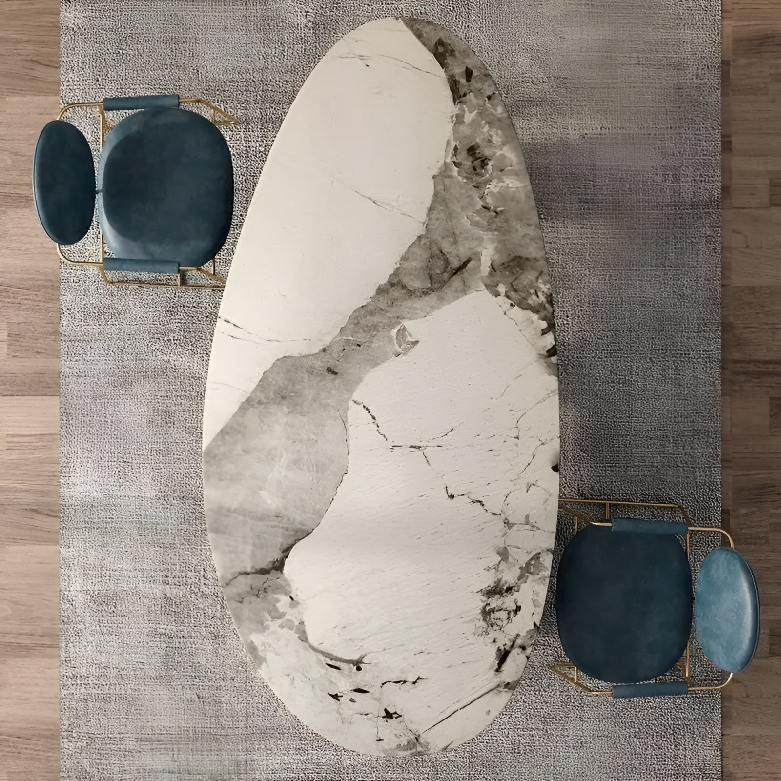Oval Marble Geometric Dining Table Set - Lixra.com