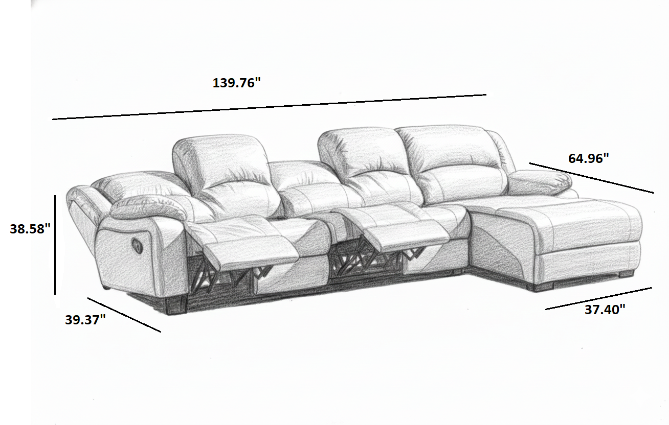• 1 x Leather Recliner Sofa(2 Seater + 1 Seater + 1 Seater + Chaise)