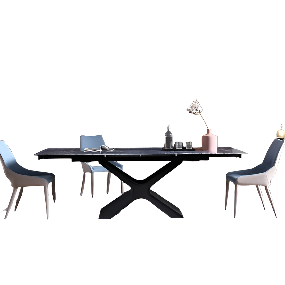 Presenting the Printed Marble Extendable Dining Table Set, an exquisite combination of style and utility that instantly elevates your dining area to a level of modern elegance. Your eating experience will be elevated to new heights with this gorgeous Dining Table Set, which features a distinctive blue-colored marble top with a stunningly detailed design.
