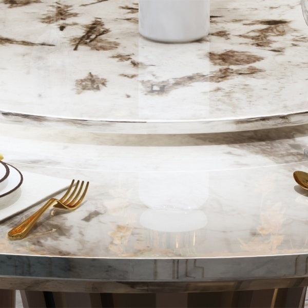 Round Marble Dining Table Set with Lazy Susan