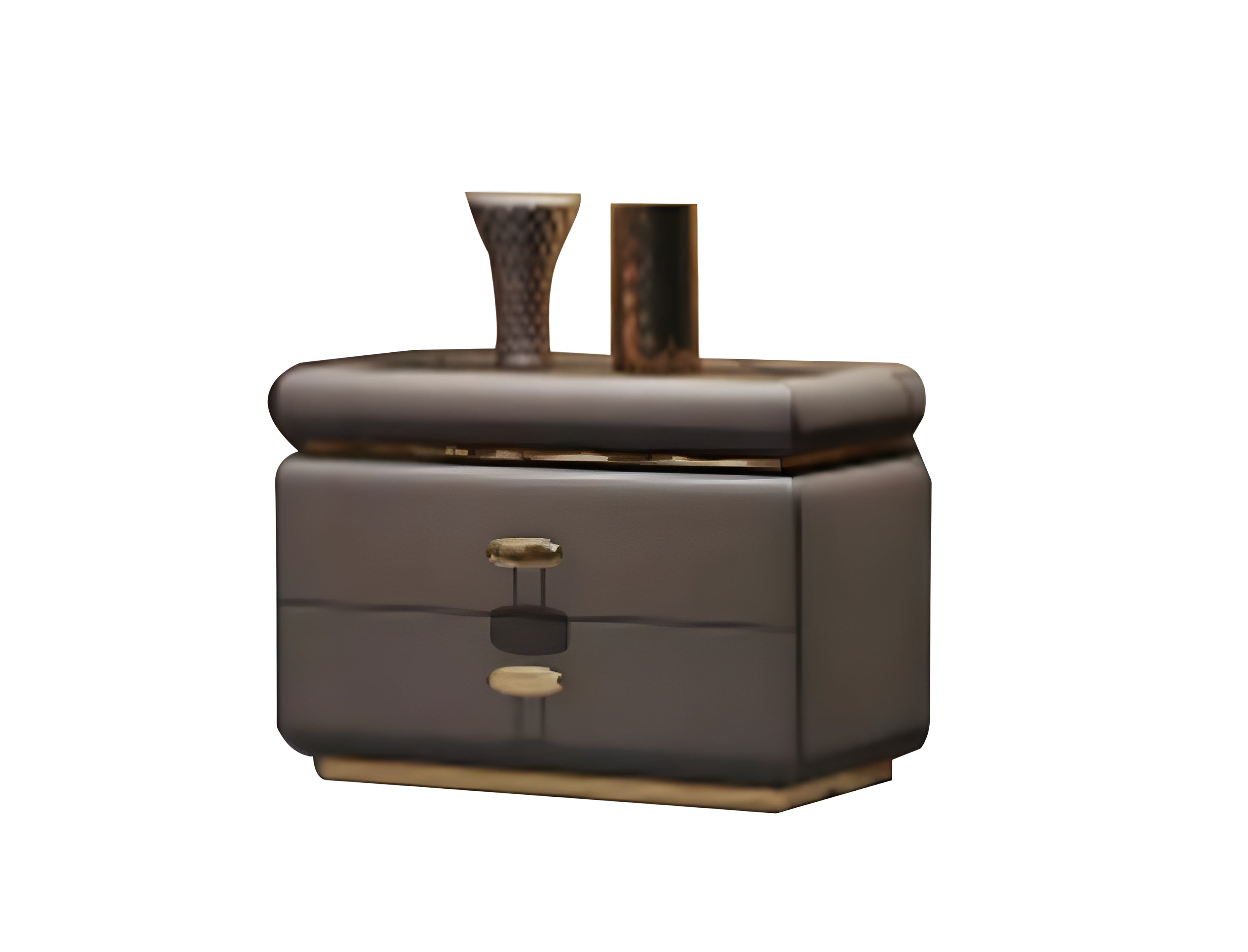 Carry a rich touch to any room through this elegant Set Of 2 Modern Bedroom Nightstand With Drawers. It's made of quality materials as metal and wood, so it's strong and sturdy enough for long-term usage. With a superior leather surface, this set of 2 modern bedroom nightstands with drawers has a lavish look as well as is simple to clean day-to-day. These two attractively designed nightstands give a lot of space to put away anything from books, beauty care products, photographs, etc.