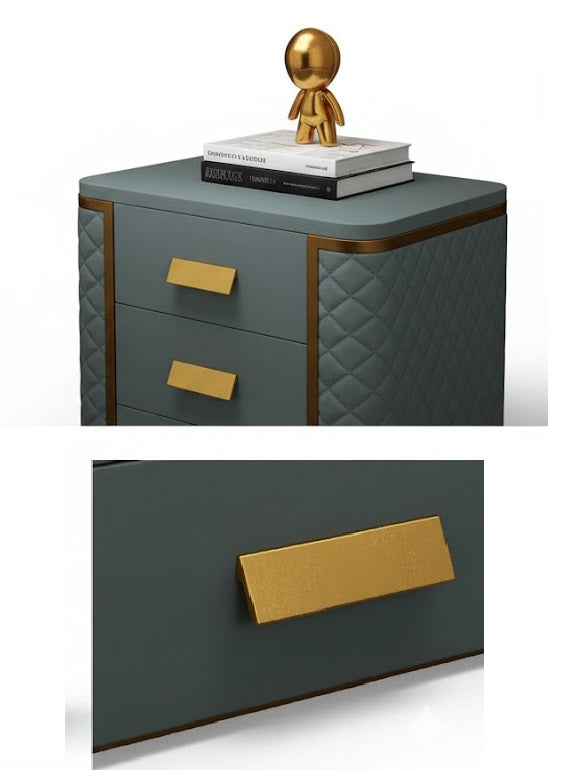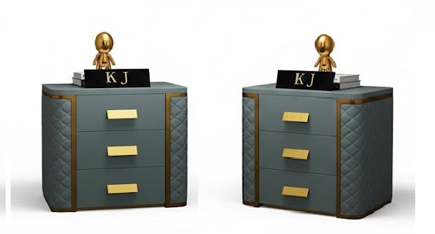 Introducing our modern and opulent mid-century appearance, A Set Of 2 Triple Drawer nightstands can be found in your bedroom. Because of its flawless surface, gleaming gold hardware, gold-capped legs, sleek form, and, of course, the decorating elements on the wooden top nightstand, which will capture your eye owing to the three-dimensional geometric front.