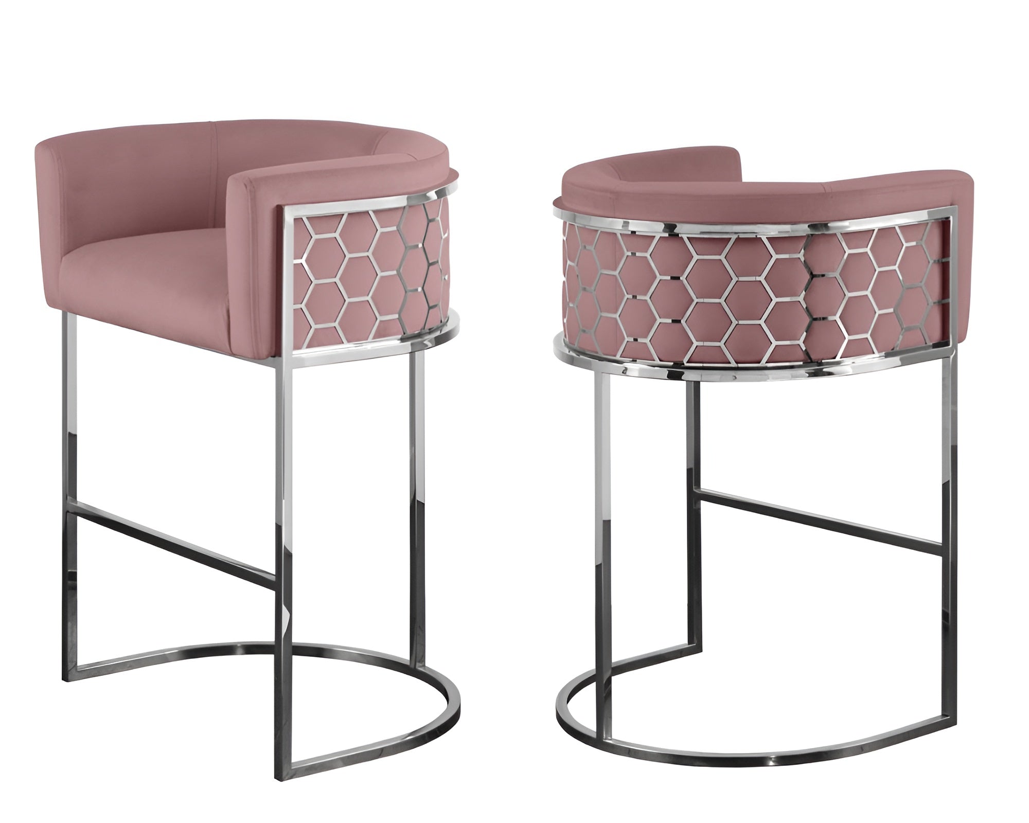 The soft velvet fabric upholstery paired with medium-density filling material provides plush comfort, while the polished metal base frame ensures stability and shine. With their refined look and sturdy design, these Modern Bar Stools add elegance to any kitchen, dining, or bar space.