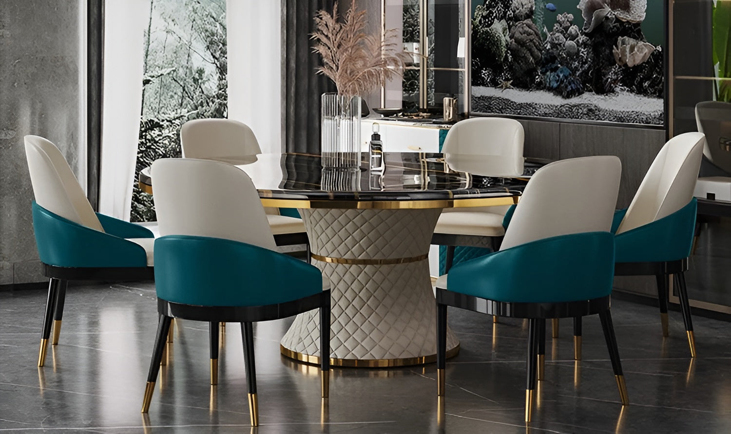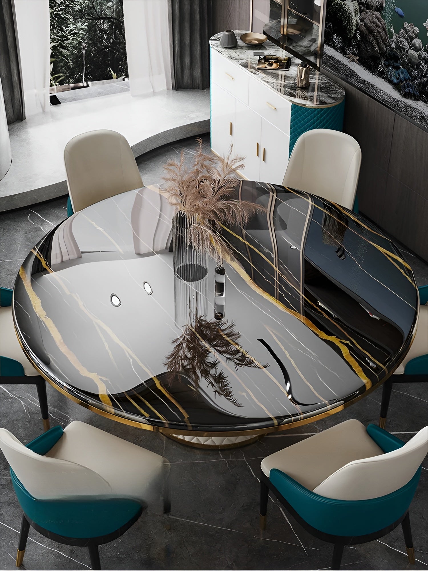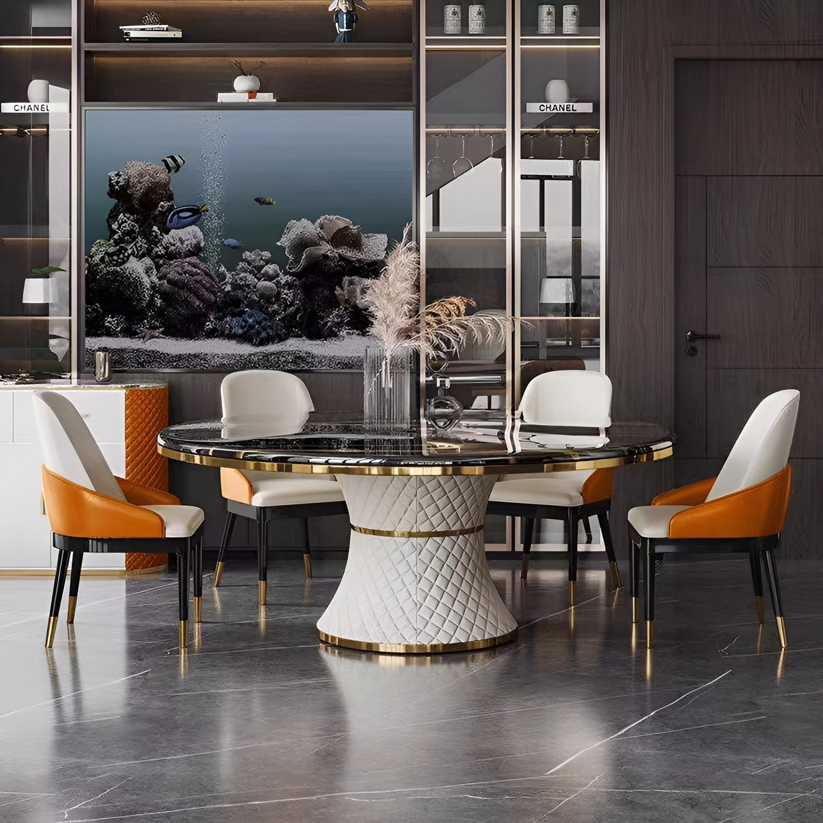 Black Marble Round Dining Table with Luxurious Golden Frame And Chairs / Lixra