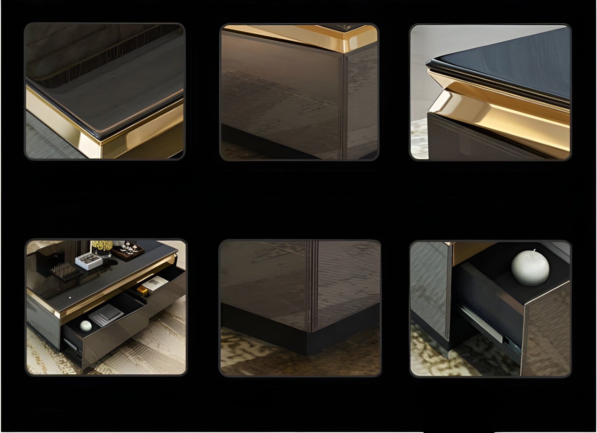 This splendid excellent finish wooden coffee table and tv stand is made from solid rubberwood and features a spacious veneer-finished shelf and is ideal for storing essential items or displaying decor. The gold-finished brass hardware on the sides and legs lends a touch of glamorous glimmer.