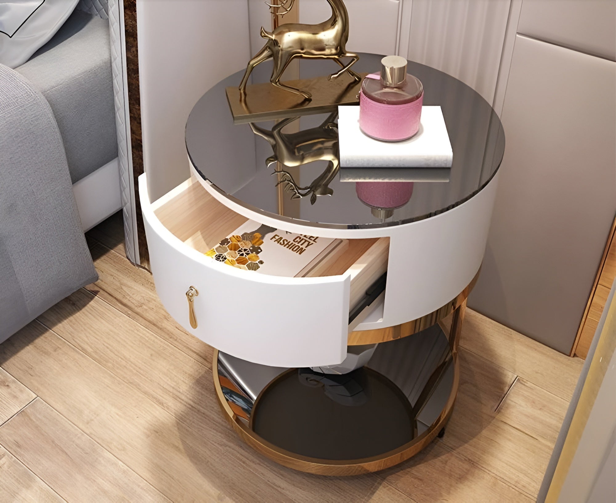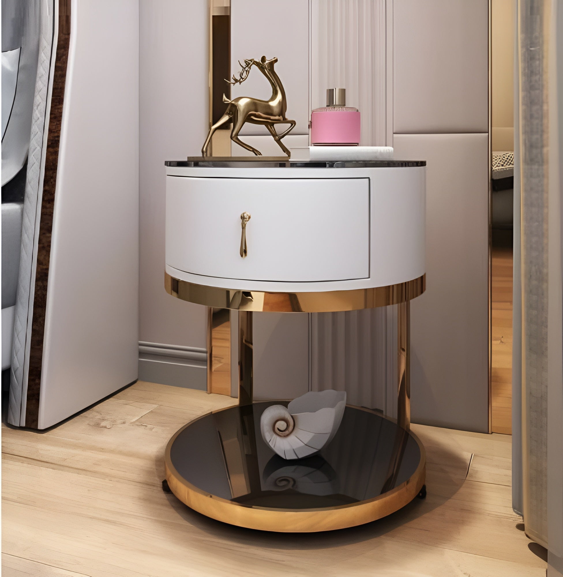 Steel Base Luxury Glass Night Stand with Drawers - Lixra.com