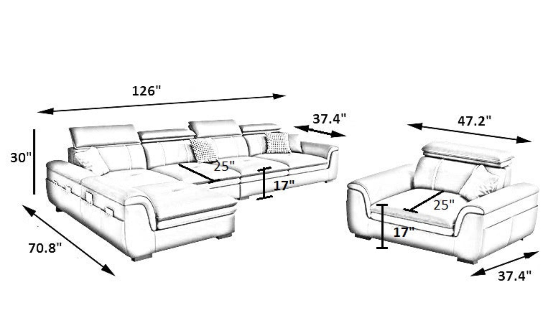 • 1 x Sectional Sofa (1 Chaise + 1 Seater + 2 Seater )