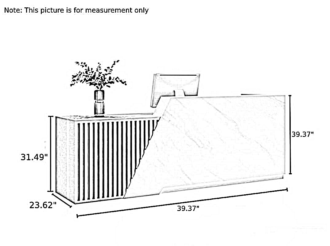 This desk is perfect for a small reception area. The deck is solid and very heavy. There is bit assembly required, but I am very happy with the quality, size, durability and color of this unit. Easy installation, good quality, and a very good price for the value of the desk. It fits really well in my small room, and totally elevates the space. it still works great nothing was damaged.The desk is as described size wise. Overall I am very happy with the finished product!