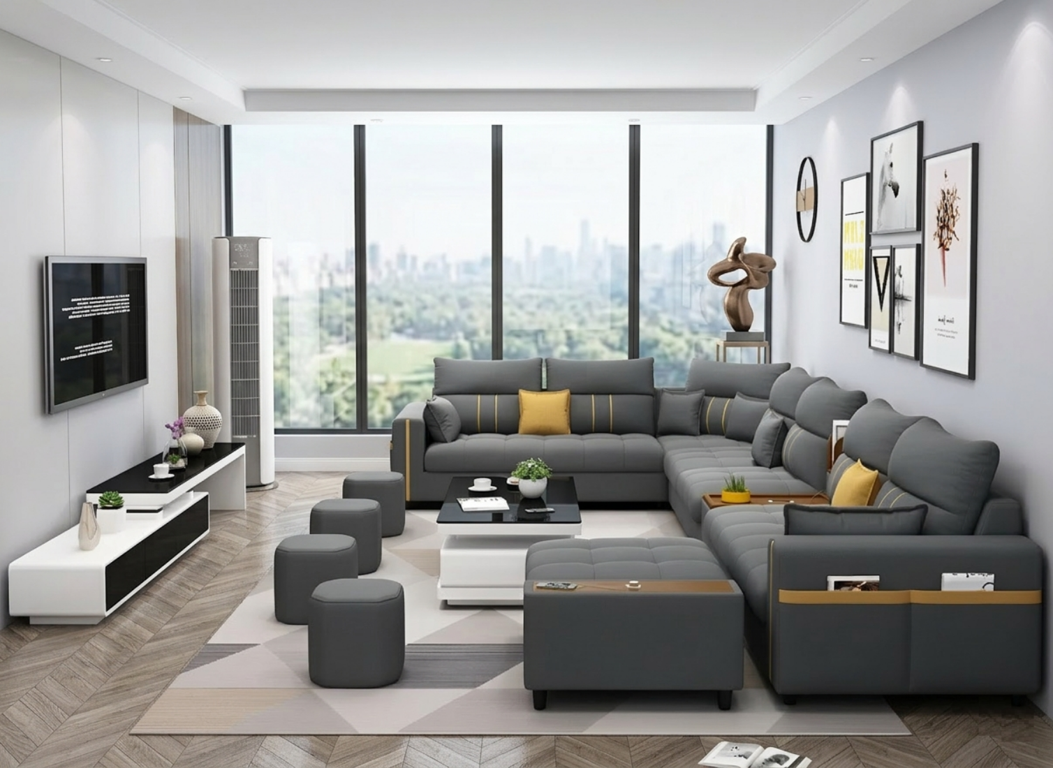 The leather sofa’s sectional layout gives you plenty of room to unwind, making it ideal for entertaining friends or simply relaxing. Long hours of comfort are also possible because the cushions are comfortable and supportive. This Trendy leather Comfortable Sectional Sofa is a fantastic option whether you're entertaining or watching TV.