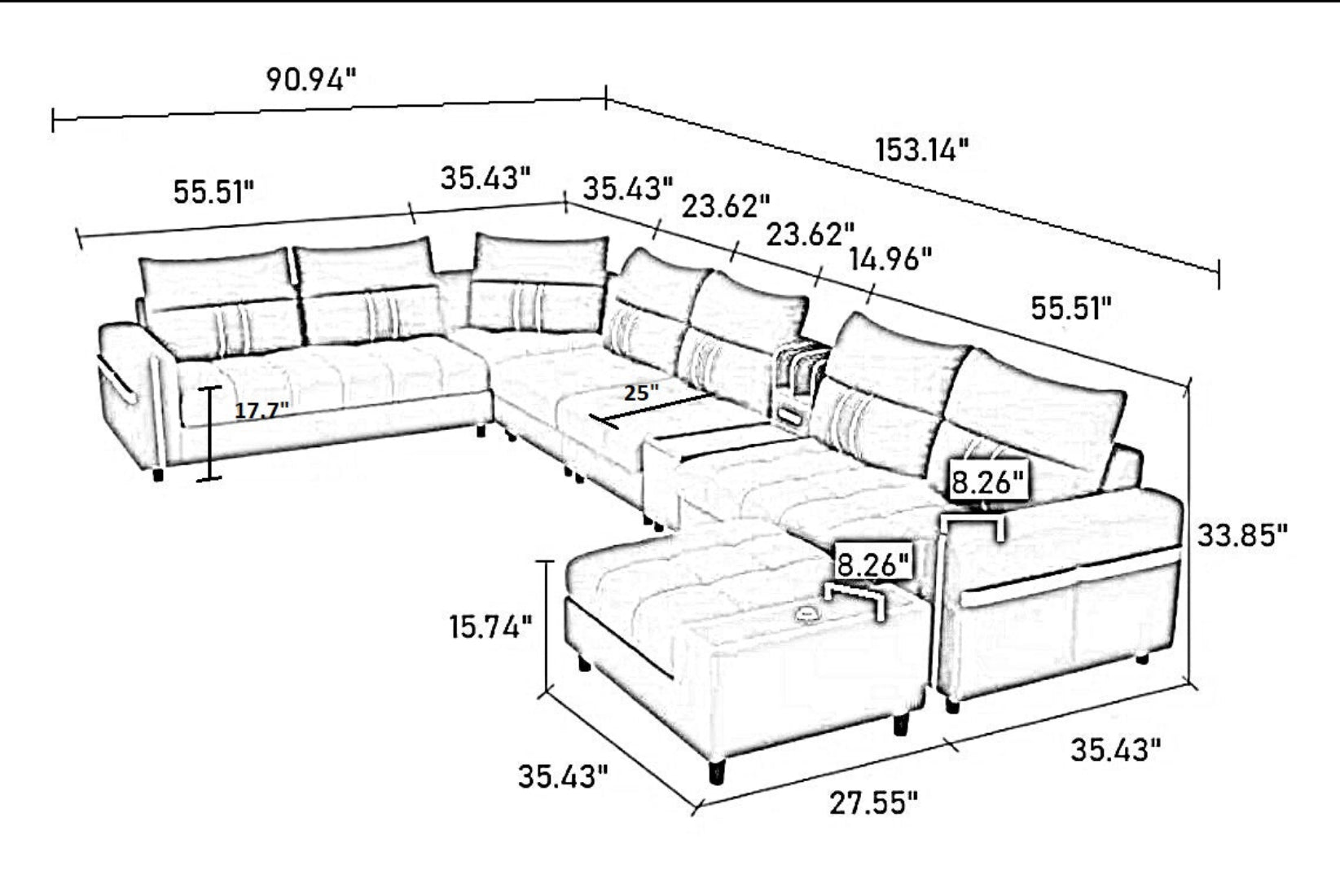 • L90.94 + 153.14xW35.43xH33.85 Inches (231+389x90x86 cm)