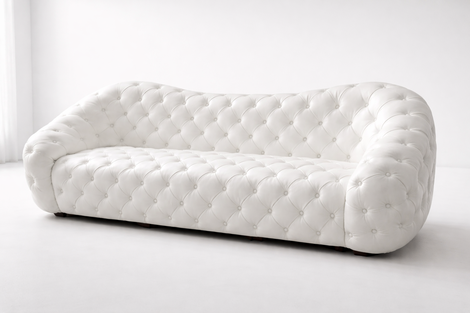 White Leather Tufted 3-Seater Sofa